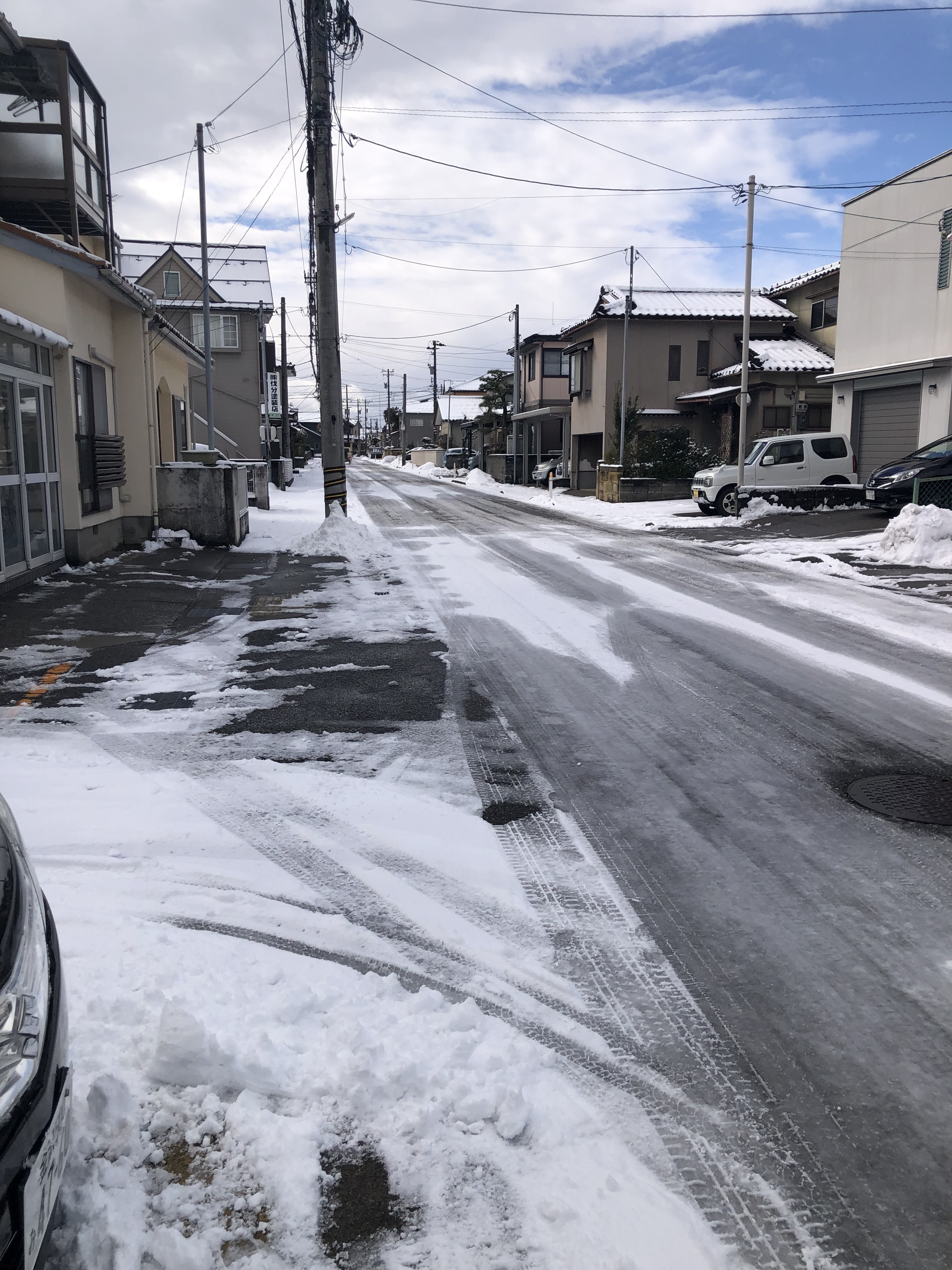 メインストリートは井戸水の融雪が自動的になされてまして積雪はありません。家の前の道路は裏道なのでそれはされてませんが?
