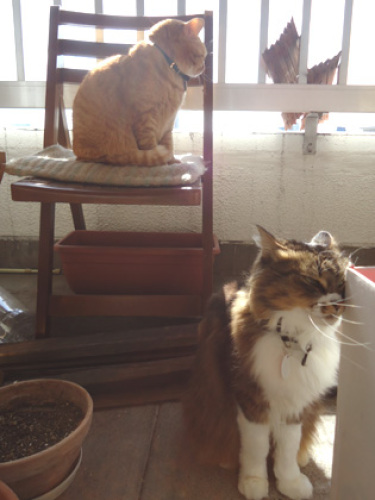 はいはい 気合いの爪とぎ爪とぎじゃ ちょっと行ってくるわねこの寒い夜中に、うーちゃんは元気です。こんな時間におんも出ても、な~んもいい事ないと思うんですけどね。まあ、下僕の鏡として、たまには寒さに耐えますよ(タバコの換気も兼ねてね……)。ちょっとウロウロしてゴロゴロして、巡回したら気が済んだようです。狭いベランダ、見回りご苦労様です。頼もしいガードマンです。今年はママン、がんがって土いじりするね。葉っぱ虫わかせて、いっぱい狩り遊びしようね。