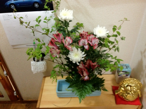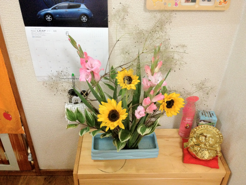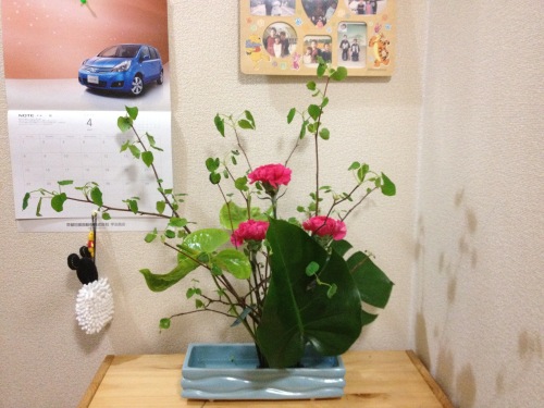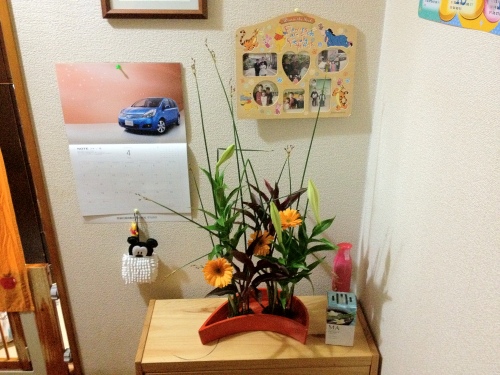 先週、生けた花がまだまだ綺麗と上手に自己流でうちにあたった花瓶にかわいくいけてくれました。今、すごくお花に興味があり楽しんでる娘に親バカですが、上手だねと褒めてあげたいです。