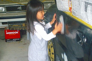 次の私の車の塗装準備をハルルがお手伝い。何色になるのかな、、、