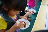 今日は公民館で流しそうめんでした。流れてくるそうめんを、上手に掬い取っていました。私もお腹いっぱいそうめんを食べました。