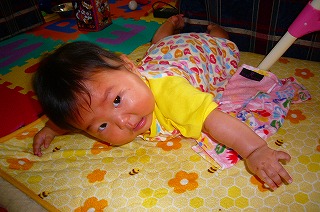 ユユの寝返りも上手になって、どこにいても「コロンコロン」と寝返る様になりました。ネンネも気持ちがいいけど、、、お手手を上げて、、、勢いを付けて、、、えいっよいしょっか~んたん!!ついでに、ひこーきぶーん も、やっちゃおうっおねぇちゃ~ん だいすき~
