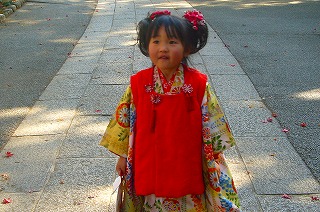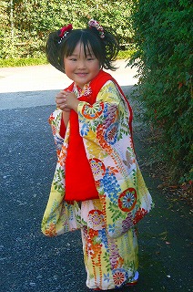 今日は七五三の日。3歳は、髪結いが出来るくらい大きくなりました、、、と、成長に感謝するのだそうです。ハルルもここまで大きな病気もしないで元気に成長をして、無事七五三の日を迎えました。今日は朝から大忙し。日頃から、ハルルの成長を見守ってくれている方々に御挨拶に回る時に手渡すクッキーをハルルと一緒に作りました。その後は、ハルルの着付け。まずは、髪の毛を結い髪飾りをつけます。髪飾りは、私からのプレゼント。七五三の時に付けてもらいたくて、ちりめんの髪飾りを手作りしました。そして、お着物を着せました。着物は、私が3歳の時に着たお着物を 私のお母さんが大切に保管をしてくれていた物です。まだ独身で実家に住んでいた時には「狭い家なのに、あれもこれもとっておくから家の中が片付かないんだよ、、、。」なんて思っていましたが、ハルルが3歳になった頃、虫食い一つ無くキレイな状態のお着物を出してきてくれて、母のその物持ちのよさに本当に感謝しました。そのお着物を着せてお世話になっている方に御挨拶に回りました。お天気も良く、暖かな日差しの中で、ハルルの成長とユユの成長を嬉しく思い、これからも元気に育って欲しいと願いました。