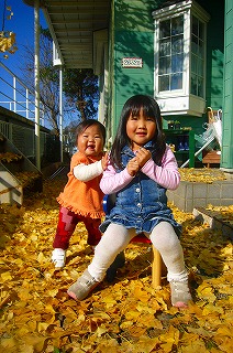 今年も庭がイチョウのじゅうたんを纏ったので記念撮影。ユユが靴を履いてつかまり立ちをしました。まだまだ、へっぴり腰のユユ。少しずつ上手になるかな。