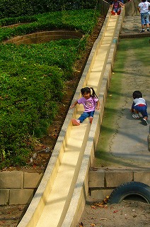 パパは今日で夏休みが終わるので最後に何処に行きたいかハルルに聞くと、ブランコの公園と答えました。ハルルが言う「ブランコの公園」とは、隣町にある公園のことなのですが、せっかくなので群馬まで足を伸ばし ゴールデンウィークにも行った子供の国へ行く事にしました。とりあえず、水筒とおにぎりとちょっとしたお菓子と水着をバックに詰め込み車で1時間、群馬こどもの国に到着しました。涼しい車の中でご飯を済ませ(今日は出発が遅かったのです)、先ずはじゃぶじゃぶ池へ。池のほとりの木陰にレジャーシートを敷くと、風が抜けてとても気持ちがいい、、、思っていたより熱くなくホッとしました。ユユもシートの上で楽しそう。ハルルは、直ぐに水着に着替えて池に入りました。本人は泳いでいるつもり。。岩と岩の間を通り抜けて、、、お水が落ちている所はいい音だね。おっかなびっくり、噴水を浴びています。暫らく水で遊んだ後は、日差しも柔らかくなってきたので冒険のとりでで遊びました。ここも風が抜けて気持ちがいい。。。これから、ここに登ります。そして、大きな滑り台で降りてきます。最後に、乗りたかったブランコ。ここのブランコは 体の周りが囲まれているので安心。たくさん遊んだので2人とも、夜はぐっすり寝てくれました。