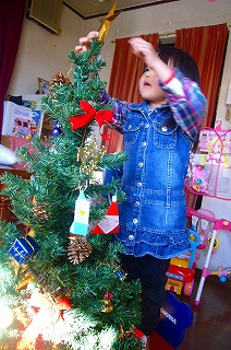12月に入ったので今年もクリスマスツリーの飾り付けをハルルとやりました。私が木の部分を組み立てると、ハルルが椅子を持ってきてそこに乗り、チョコット背伸びをして一生懸命に飾り付けをしている姿が、絵に描いたような光景でとても微笑ましかったです。