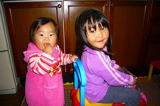 今日から3泊4日でハルルの2歳年上のいとこちゃんがお泊りです。違う県に住んでいるいとこちゃんとは、中々会う機会が少ないのでどうなる事やら、、、今日は、毎週行っているサークルに従姉ちゃんも参加したり、シャボン玉をして遊びました。2歳年上のお姉ちゃんと遊ぶのがとっても楽しい様子のハルル。歯磨きも一緒です。2日目は、ハルルのお友達と近所の幼稚園で遊びました。普段は怖がって中々登らない遊具でも、いとこちゃんが一緒なら何とかがんばれます。年長さんの従姉ちゃんは、もう本も読めます。ユユは、絵本を読んでもらいました。3日目は、隣町の公園にお弁当もちで出かけました。朝からがんばってお弁当作りました!いつも離れないでくっついて遊ぶ2人。とっても仲良しです。4日目、午前中ハルルのお友達とマクドナルドでランチ。夕方、従姉ちゃんのパパとママがお迎えに来て帰っていきました。ハルルはこの4日間で従姉ちゃんのことが大好きになったようです。従姉ちゃんも、我が家を気に入ってくれたようで、しきりにまた来たいから、お父さんにお願いして、、、と言われました。従姉ちゃんまた遊びに来てね。