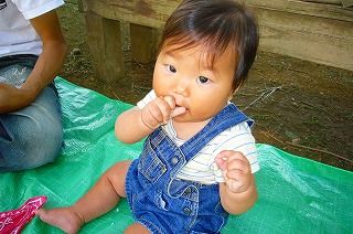 1、、2歩、なんとなく歩き始めていたユユ。今日は、おばあちゃん家でお餅つきだったのですが、ハルルと従弟くんが楽しそうに遊んでいるのにつられて、とうとう歩き始めました。足を体全体で持ち上げるような格好で歩く姿はとても感動。まだまだおぼつかない足取りですが、ゆっくりと10歩くらい歩く事が出来ました。なんだか人間って不思議です。何で立つんだろう、、、何で歩くんだろう、、、何で歩こうって思うんだろう、、、よちよちと転びながらも立って歩くユユを見ながらそう思いました。不思議です。
