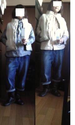 最初はしま○らの小花柄七部シャツとタートルを着ていましたが、