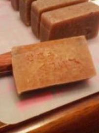 せっけん4作目!!太白ごま油とクレイのさっぱりせっけんを目指してごま油ココナツオイルパームオイルひまし油鹸化率90%水分量34%オプションガスールクレイピンクモンモリオナイトはちみつEO:はっか、オレンジ、ラベンダー驚きのトレースの早さ!!!!!なんと攪拌開始から15分で型入れ!!!なんともあっけなく。大急ぎでオプションを加え少々もったりしすぎ感ありつつ型入れ。一晩の保温ですっかり固くなり、翌日型出し&カット。スタンプも押して。あとは4週間待つのみ・・・いよいよ来週初作のマルセイユ石鹸の解禁楽しみ。