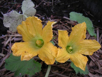 おはようございます。今日はくもり時々雨。。。 雨上がりの午前中ですので、雨つゆをよけながら恒例の花壇菜園のみまわりです。すると、、、次々と発見! 先日も書きましたが、とうとうズッキーニの花が咲きました。コメントを頂いたとおり、やっぱり雄花みたいです。。。 受粉させるための雌花がありませんので、このまま枯れていくんでしょうねぇ。 うまい具合に雄花と雌花が咲いてくれることを期待してますよ! ズッキーニくん達! これピーマンの花です。こんなに近くで始めて見ました。ビックリ! こんなに可憐な花とは思ってませんでした。あのゴツゴツしたピーマンからは想像できないぐらいに綺麗な花です! 一番花も咲いたので、そろそろ支柱を立てないといけないのかなぁ? と思っています。支柱買ってこなきゃなぁ~。つぎはこれ。。。 ミニキュウリの苗に雌花なのかしら? 小さい実のついた蕾もどきがついています。キュウリもかぼちゃとズッキーニみたいに受粉させなきゃいけないのかしら?? ん~、わかりません! まぁいいかっ! まずは、自然に任せてみましょ!そうそう自然に任せたといえば、我が家の庭でこんなものを見つけました。 葉の匂いから、たぶん「山椒」だと思います。植えた覚えもないし、たぶん『鳥たちの落とし物』から発芽したのでは? と思っています。うちの庭では、『鳥たちの落とし物』でよく「南天」や「ひいらぎ?」が発芽して、いつの間にか若木が出来ている事があるので、今回もたぶんそうでしょう。 思わぬプレゼントでしたが、大事に育てていきたいと思っています!