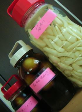 本日2度目のブログ!おととい、昨日とup出来なかったので、保存食づくりに勤しんでいました。作ったのはこちら! 今の時期しか手に入らないもの。そうです、「らっきょ」と「青梅」で色んなものを作りました。らっきょうといえば、カレーの付け合わせの「甘酢のらっきょう」ですが、今回は『らっきょうの塩漬け』のご紹介。作り方はとても簡単です。【材料】らっきょう1キロ粗塩80グラム 水(らっきょうが浸る量)酢(大さじ3杯程度)保存瓶(梅酒用の2リットル瓶)【作り方】らっきょうを洗う薄皮を剥き、根と頭を切り取る。ボールの中でらっきょうを塩もみする。保存瓶の中にらっきょうをいれる。水をヒタヒタになるぐらいまで入れる。(私はボールについた塩も無駄にしない為に、ボールに水を入れて瓶に注ぎます。)酢をスプーン2杯~3杯ぐらいいれる。暗所で温度が一定の場所で保存2週間で浅漬け 1か月で本格的に漬かります。もし塩辛かった場合には、付けた塩水よりも薄い塩水に付けると「塩抜き」できますので、お好みの塩加減にできますよ。ちなみに甘酢で使ったのが好きな人は「塩抜きしたらっきょう」を甘酢に漬けなおすと、「甘酢漬け」になり、黒酢に漬けると「黒酢漬け」、赤梅酢につけると「赤梅酢漬け」になります。今の時期にしか出回らないらっきょうで1年分のらっきょう漬けを作ってみてはいかがですか? ちなみに我が家ではほとんど、つけものは買いません。基本は自家製です。ぬか漬けも気が向いたら作ります。昔懐かしい「漬けもの」の味は乳酸菌やらの味がしていいですよ~。まずは簡単なものから始めましょ!【6月中旬頃から収穫予定】本当に新鮮♪土付きでお届けお好きなキロ数でどうぞ♪ガンコ社長が育てた土付きらっきょう1kg【gw_m_tm】ここは少しお金はかかりますが、きれいに薄皮を取り除いた状態のものを発送してくれるみたいです。薄皮剥くのが一番大変なので、こういうショップはありがたいです!安心の日本製、ガラスの厚みが違います!石塚硝子 アデリア梅酒瓶 抗菌貯蔵びん 2L一度買ったらずっと使えるので、冷蔵庫にそのまま入るタイプや軽量のタイプなど、自分のおうちに合わせて購入したほうがいいですよ。
