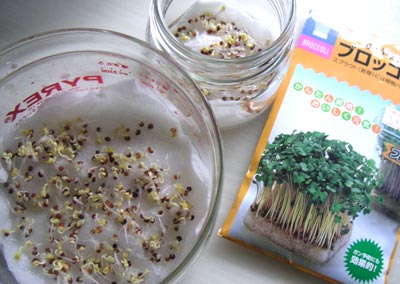 本日2回目のブログです。あれから家のまわりを数周してみましたが、「さつまいも」を植えられそうなところは今だ発見できず。。。はぁ~、深型プランターを買うか? ん~悩む! もう少し悩んでみます。さて、ブロッコリースプラウトですが、こんな感じに成長しました。【ブロッコリースプラウト成長記録】5月11日に種を蒔いてみた。上の写真は5月13日の様子 根っこが出てきました。。。5月17日の様子(半日お外に出した様子) 寝込んでいたので、すっかりスプラウトの事を忘れていて、16日の夜にハッと気付き暗所(台所の棚の中)から出しました。。。 5月19日の様子 暗所から出して2日目。もう食べらると思いますよ。 昨日も食べられそうな感じだったので、スプラウトは約7日~10日で簡単に出来ますねぇ。 皆さん! 私ここに宣言します! もうブロッコリースプラウトに200円も出さないぞ~! スプラウトは自宅で育てるぞ~! ムクムクしたものが嫌いな貴方も出来る、新型インフルエンザで外出禁止になっても新鮮野菜が食べられる(笑)! 節約&簡単健康食材get法ですよ~。絶対オススメ!最近、テレビや雑誌などで話題となっている「スプラウト」かいわれブロッコリー 数量:50ml最近、テレビや雑誌などで話題となっている「スプラウト」話題の「スプラウト」。ルビーかいわれ大根 数量:小袋異色のかいわれ大根登場!パープルさんご 【スプラウト】