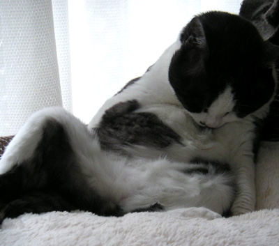 こんにちわ!今日も雨ですねぇ~。お外へ出るのもおっくうです。我が家のにゃん太は、一日中お気に入りのクッションの上にいます。午前中のにゃん太はこんな感じでした。 毛繕いが忙しくらしく、無視されました。あなた! 恥ずかしいわよ!ちなみに夕方のにゃん太は。。。 寝てます。。。ひたすら寝ています。。。雨なので、お外には「にゃん友」も見当たりません。こういう日はお気に入りのクッションの上で、ひたすら寝るに限るそうです。。。 はぁ~。あたしもぐうたらしたいなぁ~。あっ、さっき電話があったんです! 「ご予約いただいていたさつまいものツルが届きましたので、早めに取りに来て下さい」って! むふふっ。。。「あ・た・し・ 土作って、待ってましたよ~! ちょっと嬉しいよ~!」明日も雨だけど。。。 さつまいもの芋づるって雨の日に植えてもいいのかなぁ?? また調べなきゃ。。。 本当に家庭菜園初心者は調べることが多いなぁ~。でも楽しい!!サツマイモ苗【予約販売】鳴門金時 (1束/切り苗10本)初めて聞きました。エレガントサマーだそうです。おいしいのかな?サツマイモ苗【予約販売】エレガントサマー(切苗10本束)さつまいも苗