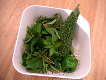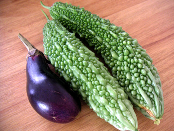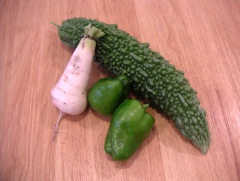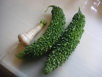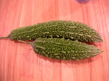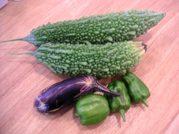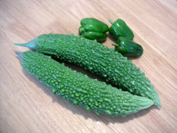 おはようございます。ゴーヤの収穫に料理が追い付かず、とうとう手を出してしまいました『ゴーヤカレー』。。。 あまりに薄く切ってしまったために、微妙に分かりにくいのですが、右のじゃがいもの上とナスの間に横たわっているものが一つ。。。 写真真ん中より少し目線を落とすと、ピーマンの左横にまた一つ。。。結論! 「あら、普通に夏野菜カレー。苦みは若干感じるけど、ピーマンとあんまり変わらないじゃないの? おいしい。。。」というのが感想!今回は試しに半分のみ入れてみたんですが、2人分だったらこのくらいで丁度良いかなという感じです。4人家族では1本かな? 苦みが出てしまうのは避けたかったので、ゴーヤは極薄の半月切りにして、いつものごとくお湯に浸して苦みを抜き、直接鍋で炒めるのではなく、別のフライパンで玉ねぎと一緒にしんなりするぐらいまで炒めてから鍋に入れるという方法をとりましたが、効果があったのかは???良かったらお試しくださいねぇ~。**************************************沖縄県産ゴーヤー使用の沖縄カレー沖縄 58(ゴーヤー)カレータコライス&ゴーヤーカレー 260g試しに検索したらありましたよ『ゴーヤカレー』。 知らなかったぁ~。商品になってるということは沖縄では『ゴーヤカレー』は当たり前なのかしら???**************************************