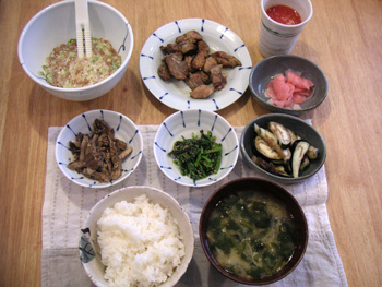 おはようございます!今日はちょっと朝寝坊してしまいまして。。。完璧手抜きの朝ごはんです!舞茸のオイスターソース炒め(夕食の残り)ほうれん草の胡麻和え(夕食の残り)紅ショウガ(自家製)ナスのぬか漬け山芋オクラ納豆地鶏の炭火焼(真空パック)ワカメとほうれん草の味噌汁トマトジュースという感じで、納豆と山芋を混ぜただけ。。。 そして綺麗に盛っただけ。。。 すみません! 夜はしっかり作ります! たぶん。。。****************************************【みやざき匠味伝】宮崎名物鶏炭火焼(1パック)簡単便利!人気宮崎地鶏専門店の味をご家庭で! 05P03Aug09舞茸の本場・秋田から上品な味と香りをそのまま直送 十條きのこ園【華まいたけ】生舞茸1kg紅ショウガ千切り 1kg【生姜本来の風味を生かしました。沖縄そばに欠かせません!】****************************************