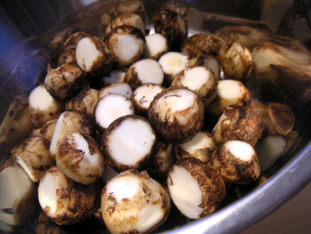 先日、実家からの支援物資の中に入っていた小芋。。。我が家では、とても好評な『サトイモの味噌和え』を今日つくりました。 この料理、私の実家ではポピュラーな料理だったんですが、結婚してから作ったところ、初めて見たし食べたといわれる事が多く。。。 そして意外に好評なので紹介してみますね!【材料】サトイモ(小芋)白胡麻味噌砂糖酒or湯 まずは下ごしらえ。私の場合はサトイモの頭とお尻を少しだけ切り落とし、水から茹でます。(この作業をすると引っかかりなくツルっとむけます。)この間に「白胡麻」を擦り、「砂糖」「味噌」「少量の酒or湯」を入れて混ぜます。味をみながらととのえます。(写真の味噌は入れすぎました、スプーン1杯分ぐらい少なめでいいですよ。) 茹であがったサトイモの皮をむき、このすり鉢の中にいれます。(普通サイズのサトイモで作る場合は、ちょっと柔らかめになるまで茹でて下さいね。固めだと美味しくないですよ! 柔らかいのもポイントです。だからこの料理は小芋でつくります。) さてここからです!サトイモをただ混ぜるだけではありません。いくつか潰しながら混ぜます。この潰しながらというのがポイントなんです! 目安は「とろろ芋」ぐらいの滑らかさになるまで、サトイモを潰しながら、滑らかさを調整してください。(決して全部潰してはいけませんよ!) あくまで小芋にねっとりと味噌胡麻がからみつくぐらいを目安にしてくださいね!さぁ~、これで完成です! 見た感じはそんなに? という感じかもしれませんが、小芋の塩ゆではお酒のあてですが、これはご飯のお伴です! 煮っ転がしもそぼろ煮も美味しいけど、たまには醤油ベースでない里芋もいいですよ!サトイモの収穫が始まると、スーパーにも小芋だけ袋に入ったものが売ってますよね! 良かったらお試しくださいね!***************************************お味噌汁や煮物に【宮崎産】 里芋 2キロ美味しい里芋の種イモ□八ツ頭 大 約800g<話題のスーパーフード☆>カルシウム30倍!鉄分4倍!味はホクホクのジャガイモのようで、粘りの少ない里芋のような・・・栗みたいなホックリ甘み♪青森 アピオス ほど芋【青森産 アピオス400g】畑のうなぎ?!驚きの栄養満点おイモ登場!栄養価が高いだけじゃない、クセになる美味しさのほくほくアピオス☆生産量日本一の本場からお届け★[※冷凍便][※他商品との同梱不可]***************************************