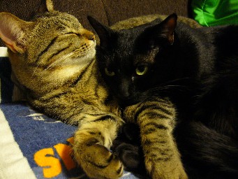 みなさんこんばんは。夫です。奥さんが最近さぼっていますので、今回は私が更新します。今回の主役は我が家の人見知り女王「なな」です。主役です「ちょっといい話にゃ」我が家は築15年のマンション。床は過去にご紹介した様にカーペットです。今回フローリングに張替えを決断。寸法など計っていたら懐かしい事を思い出しました。まずは我が家のトイレのドアの下にご注目下さい。もじゃもじゃになっていますよね。少し拡大写真二匹がまだうちに来て間もない頃・・・夕方私達が家に帰ってみると、ななが一生懸命カーペットをガリガリしていました。はぁ~と思い少し叱ったのを覚えています。。。その後、家の中を見渡すとめぐさんがいません。家中探すと、トイレの中から「ニャァ ニャァ」とめぐの声が。もしかして・・・・朝、奥さんがトイレに入った時に、いつの間にかめぐが潜入。全く気付かずに、半日以上暗いトイレの中に閉じ込めたまま出かけてしまってました。めぐの「暗いよ、狭いよ、少しくさいよ~助けてえ」の声に、外にいる「賢いなな」が色々試した挙句、一生懸命ドアの下を掘って助けようとして、カーペットがもじゃもじゃ、びよよーんになったのであります。なんて素晴らしい姉妹愛!!二人で感動したのを覚えています。いい話でしょ。今も二人は大の仲良しです。寝る時もこんな感じです。なな「めぐ枕大好きっ」 撤回!!※補足その後めぐはトイレがトラウマにならず、むしろトイレが大好き。「中に入れてくれー」とおねだりします。たまに無理やり入ってきて便器にスリスリしようとするので、あせって叱ります^^;暗い密室で何かがあったのでしょうね・・・・・