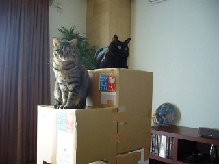 更新をさぼっている間に、いつの間にか9月になっていました。。骨折していた小指もほぼ治り、明日から自転車通勤再開です。 最近、通販での買い物が続いているので我が家のにゃんこ達は箱天国の日々を送っています。めぐ 「あ~らくちん」なな 「2個あるからケンカしないのにゃ」リラックスめぐめぐ 「たまにはこういうのもアリかにゃ・・」めぐちゃん、なぜにその体勢??(゚m゚)ププッなな 「この箱、捨てないでにゃ」残念ながらこの箱、めぐが中にゲロッパしてしまいななの願いもむなしく、ゴミ箱行きとなりました。。居心地よかったのにねぇ。 2匹の箱生活はまだまだ続きます。。。めぐ 「う~ん、、これはちょっと狭いにゃ・・」めぐちゃん、小さめの箱に無理やり入ってますその頃ななは・・・なな 「ちっちゃな箱でもトライする事が大切にゃよ」さらに小さいのに挑戦中。。なな 「完璧にゃ」あの~ななちゃん、、、はこ、壊れてますけど・・・(≧m≦)ププッ仕切りの間に綺麗に収まって満足めぐ^^いつも散らかっている我が家ではありますが・・・箱入りシスターズのおかげで、いつまでたっても片付きそうにありません。。(おまけ)夫特製“あごのせ”付きの箱でおくつろぎ中。。。