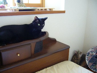 最近、早起きが続いています。。ほんとはゆっくり寝ていたいのですが・・・ 朝5時になるとカーテンを開けるシマシマの物体。。。眩しぃぃ~~この朝陽ビームが私達の顔面を直撃するのです。閉めてもまた開けるしぃ・・・・・はぅ。。めぐ 「カラスさんがいるのにゃ」カラスの鳴き声がすると、飛んでってカーテン開けてます。寝れな~い! って思うけど、このうしろ姿を見てると閉めるのが可哀相になってきて、結局しばらく開けたままに…^^;頑張って2度寝するけど寝た気がしません。。トホホ めぐ 「他の鳥さんもいるにゃ~」あれれ めぐちゃん。。ポールにあご乗せしてる。。。 楽してますね~ (≧m≦)ププッ明日は朝5時にカラスが鳴きませんように! 今日、梅サワーを1キロ分仕込みました。1ヶ月位したら飲み頃になるかな。。楽しみ♪