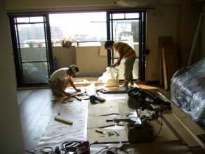 カーペットからフローリングに張り替えて約10日。なかなか快適です工事の様子カーペットより衛生的だし、掃除も楽かな~。これでもう、めぐのゲロッパやう○ちの後のおしり拭きに悩まされずに済みそうちなみにこちらは工事の間クローゼットに避難するなな&めぐ なな 「開けるニャッ」 めぐ 「うるさくてかなわんにゃ!」相当びびっていらっしゃいました。めぐは大工さんが帰ると出てきましたが、ななは1日20時間くらいこの中に…お疲れ様でしたね。めぐ 「にゃんか違う…」なかなか最初の一歩が踏み出せないめぐ^m^ 初めはちょっと緊張気味のお嬢さん達。10日たつと・・・リラックスできるようになりました慣れない床で滑りまくっている姿をみると、少々かわいそうですが…ま、そのうち慣れてくれることでしょう。。それよりも、、、爪だしダッシュだけは勘弁して欲しいなぁ……(←切実な願い^^;)