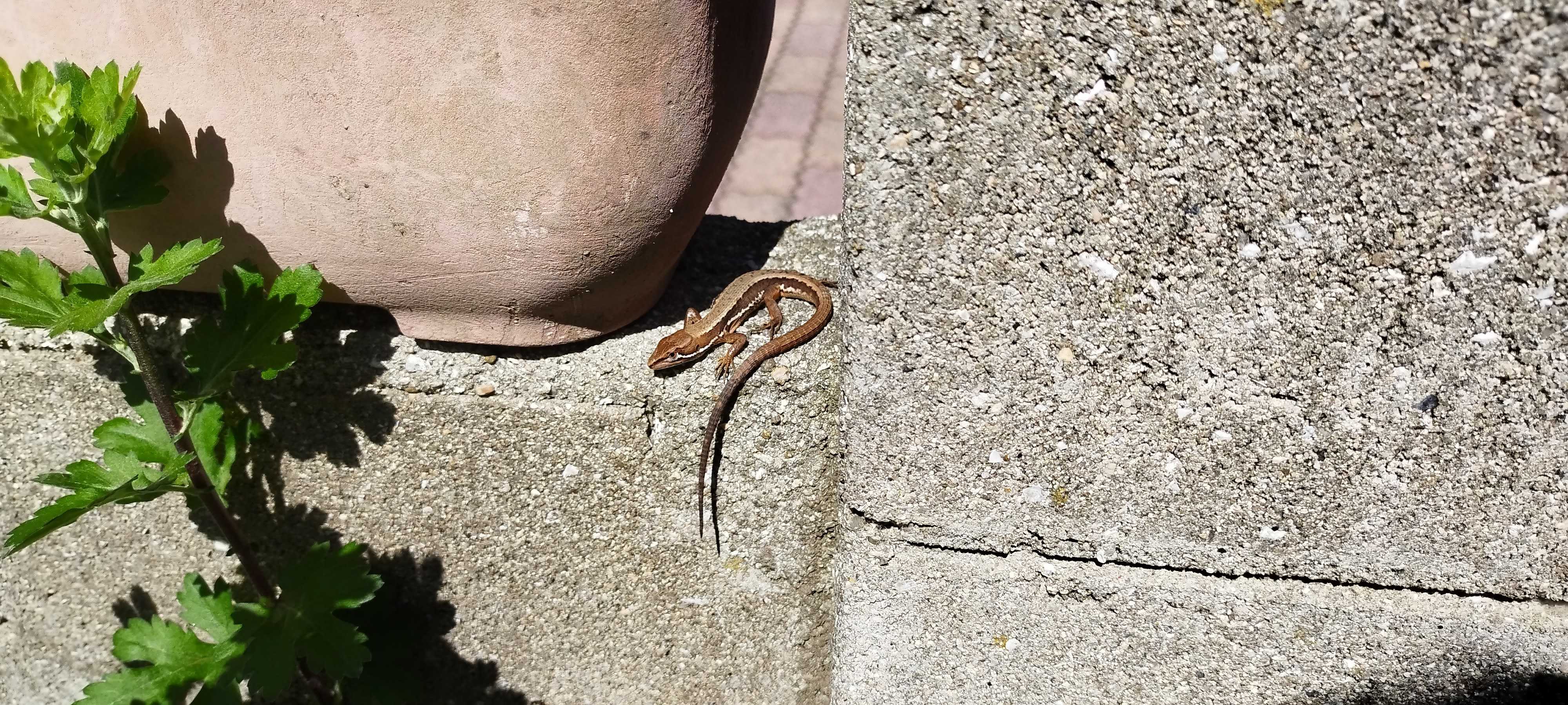 最近、庭の塀でカナヘビが日向ぼっこをしているのをよく見かけます。
