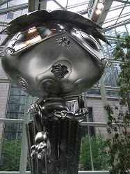 近付いて見上げるとなんとも滑稽な表情をしていました。この河童ちゃんは村上隆さんの作品で Oval Buddha (2007年)。蓮に座って肩肘ついているのは芸術家本人のポートレートらしい。全身プラチナ箔で覆われていて、眩しかった