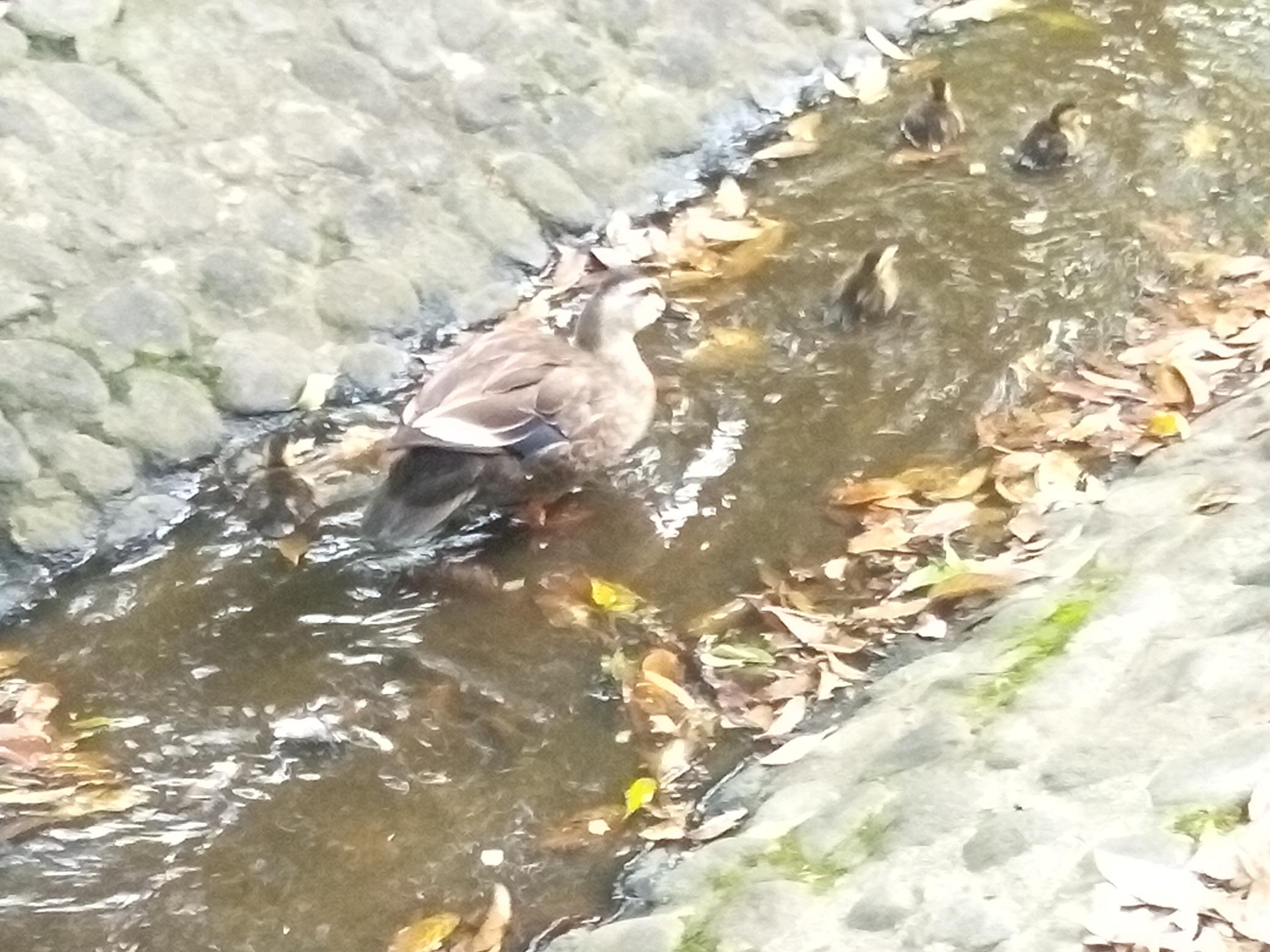 すると池の手前に母鴨と赤っちゃんのチビ鴨がいました。びっくり