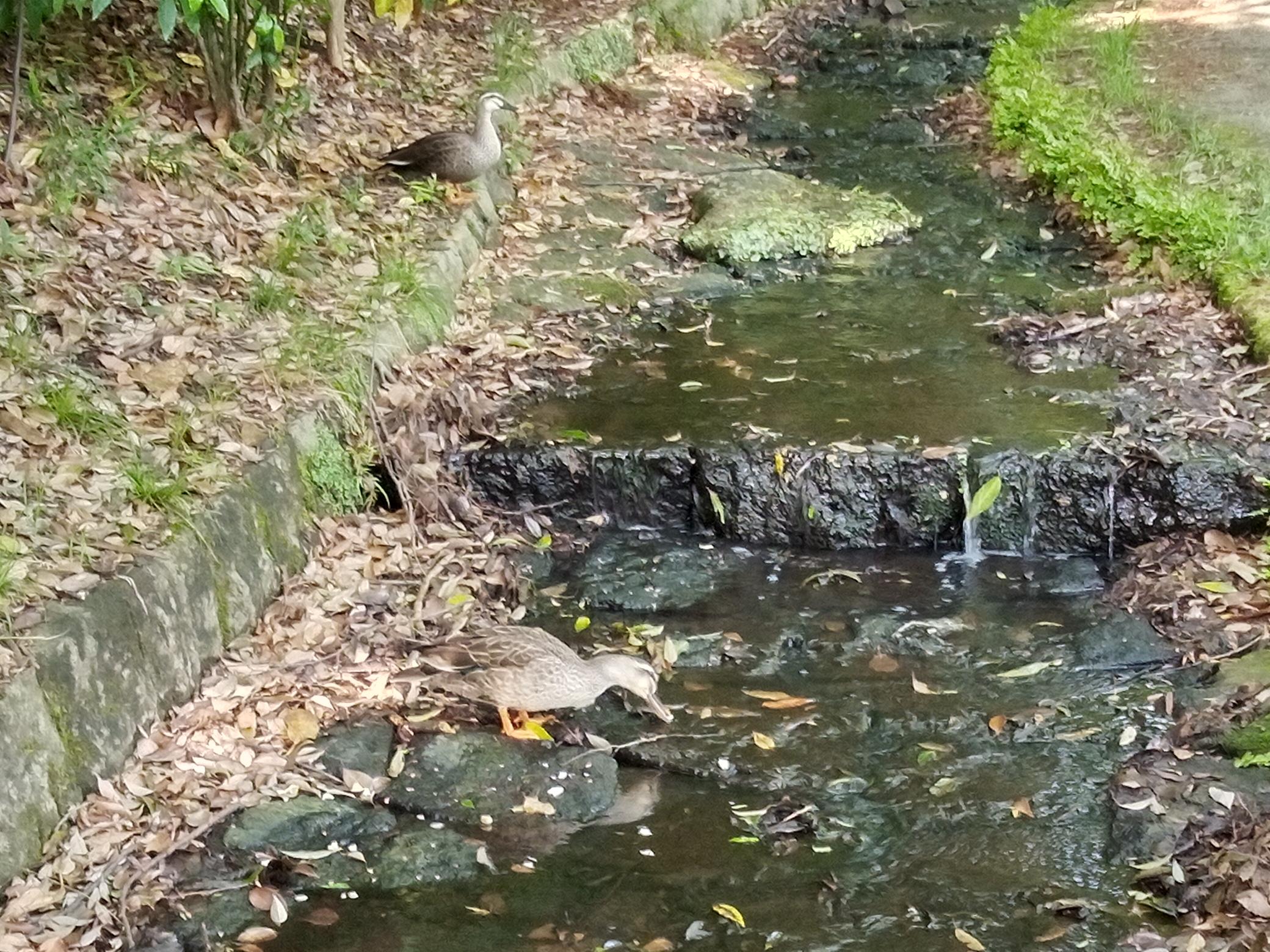 まんまる広場手前の小川にも番の鴨がいました。