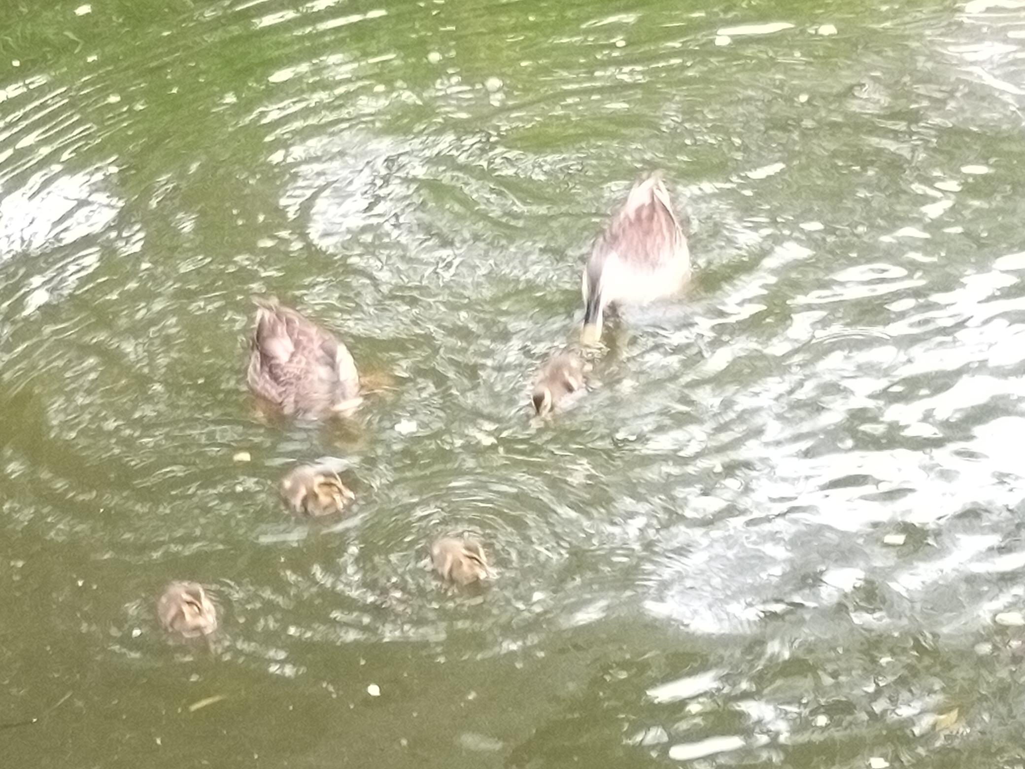 ​この朝は、全部で大人の鴨8羽、チビ鴨13羽がいました。大笑い