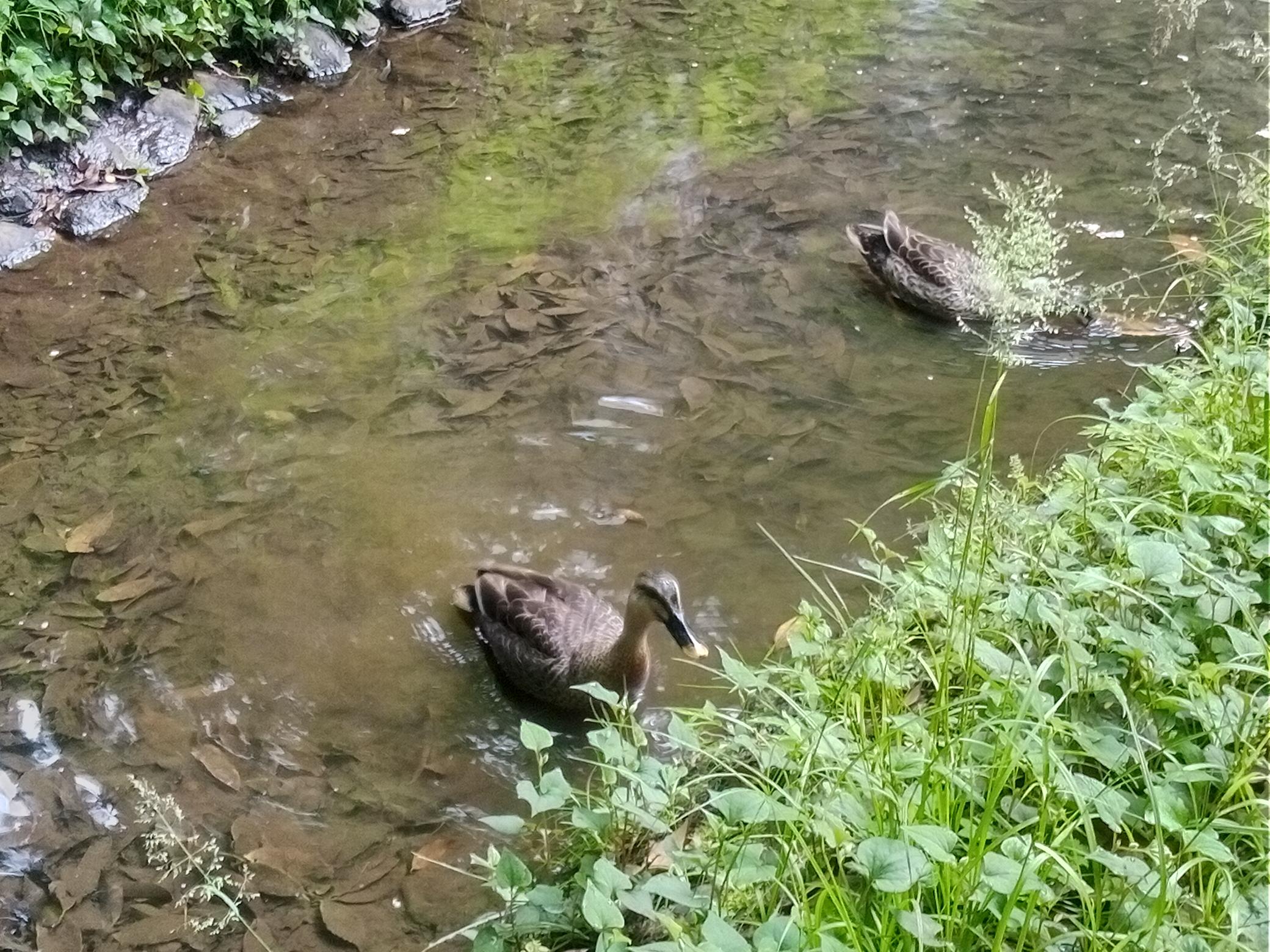 ​​エサをあげて少し先に進むと、何とチームAの鴨達がいました。大笑い
