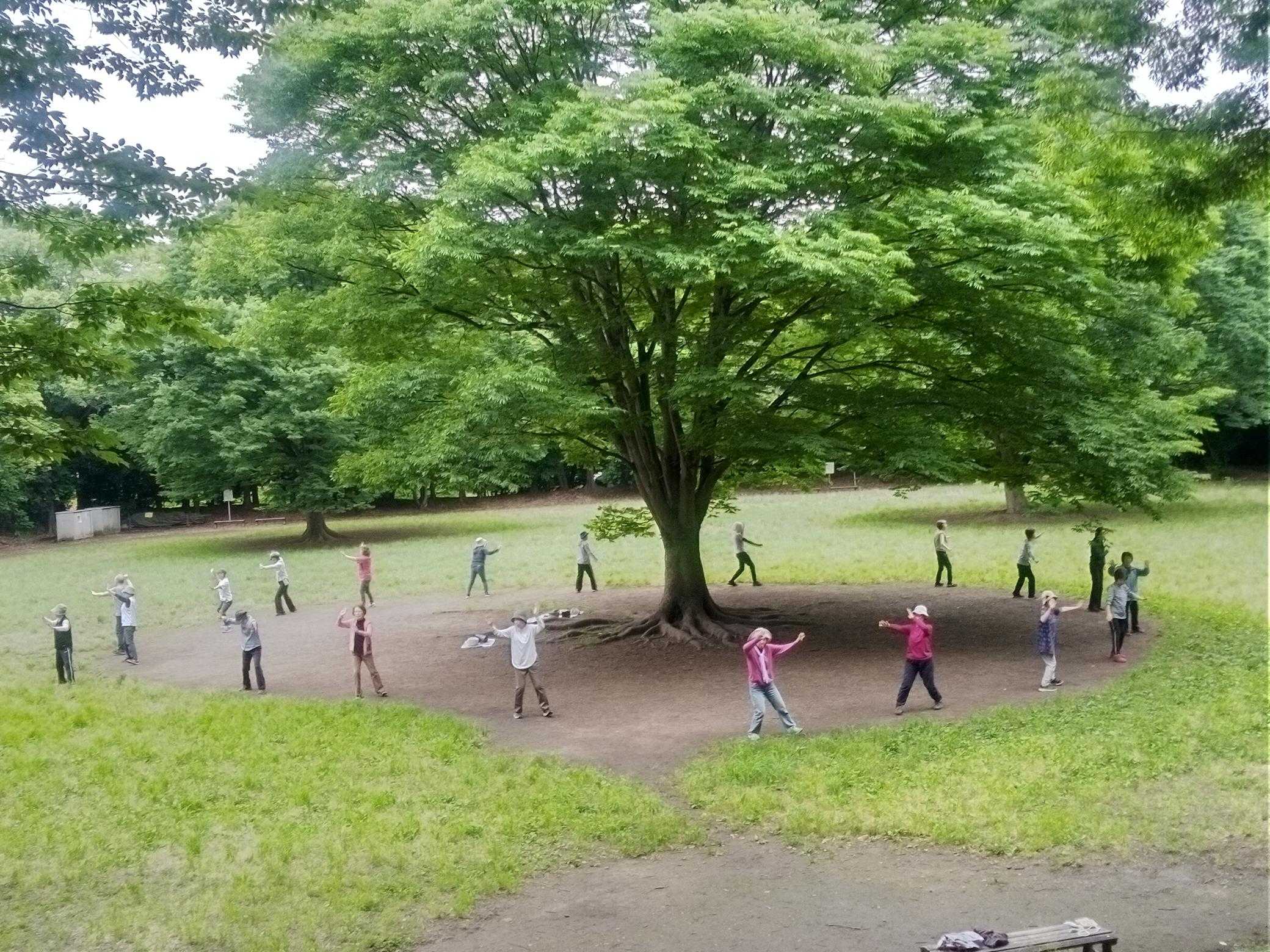 まんまる広場ではラジオ体操、太極拳などを行っていました。