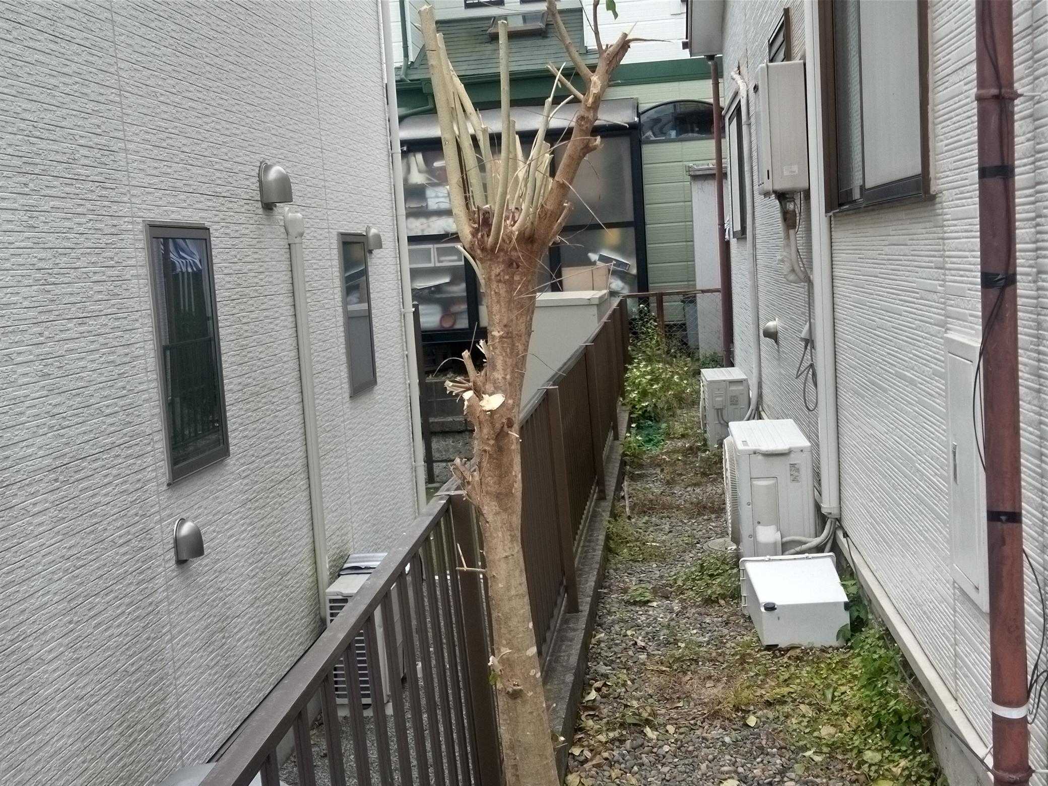 ​​​特に1本の樹木が隣地を越境しているので、昨年に続き伐採しました。ウィンク