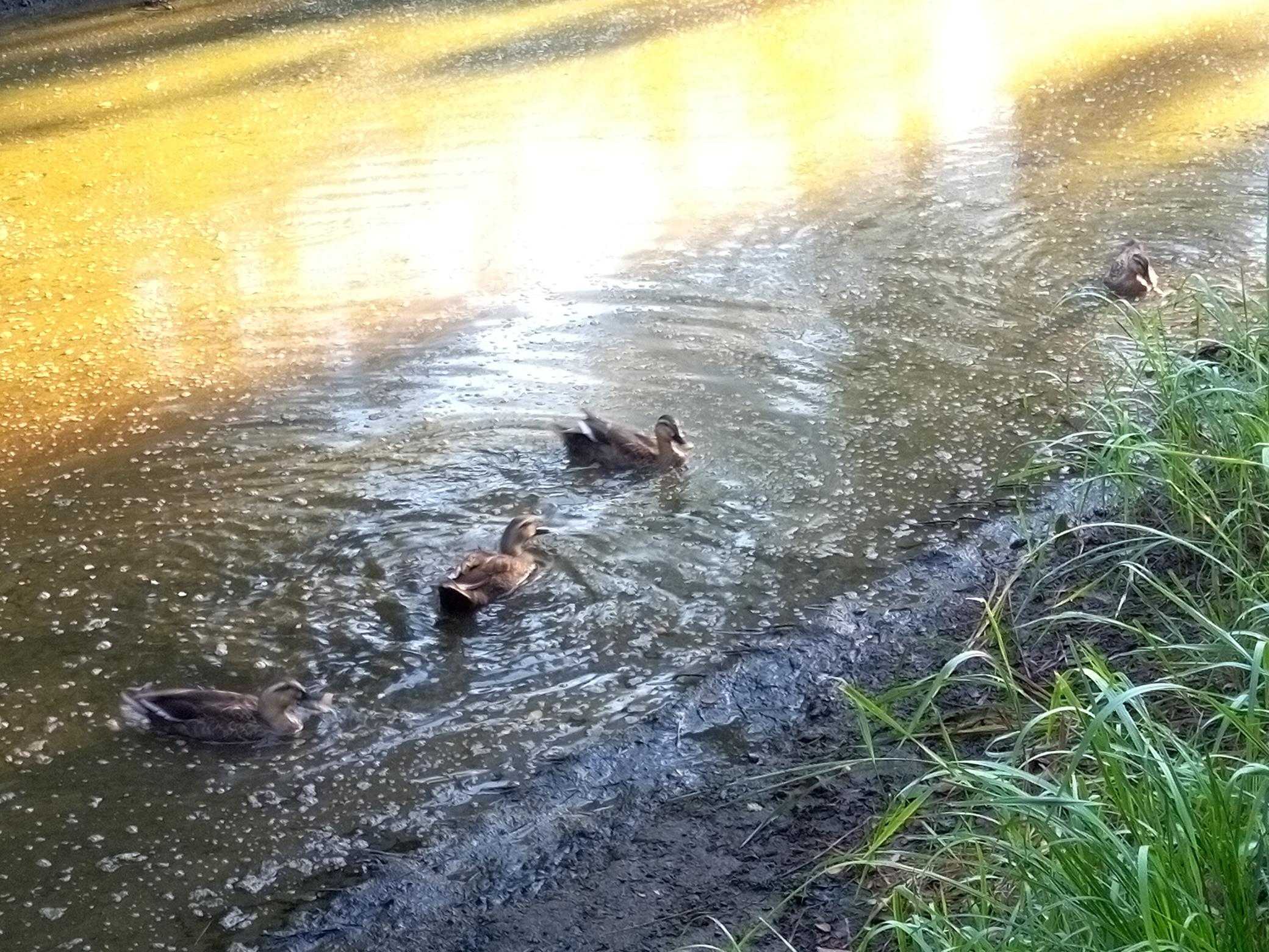 ​​大原みねみち公園の池には前日同様5羽の鴨が待っていました。ウィンク