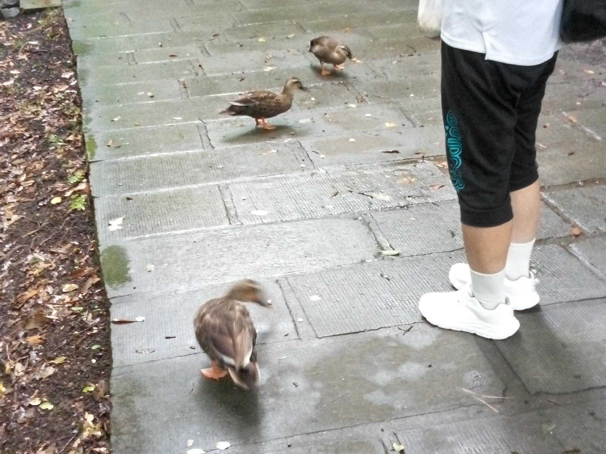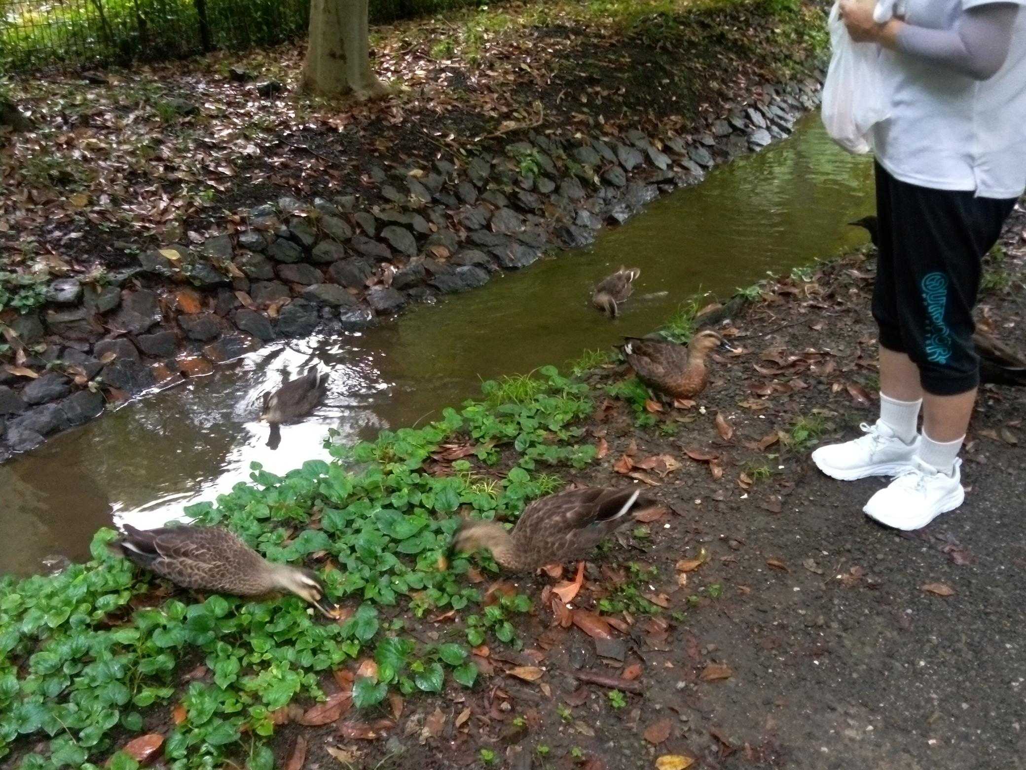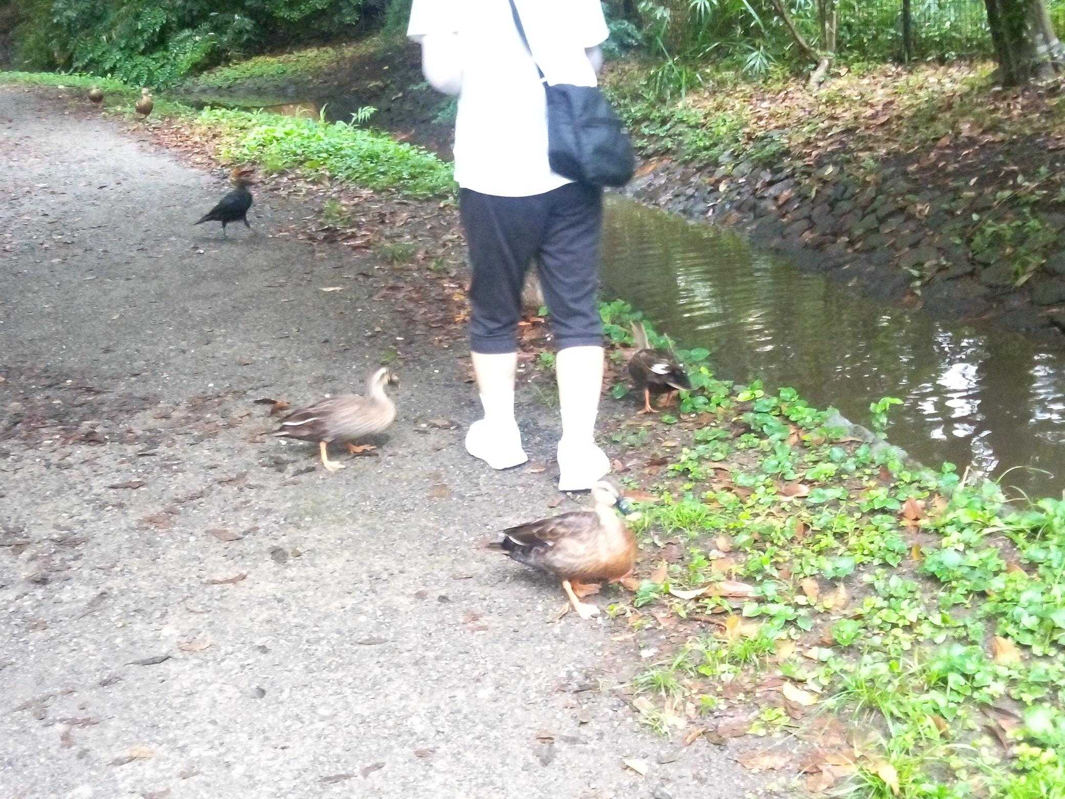 最近は私達のように鴨にエサをあげるおじさんも出て来ました。