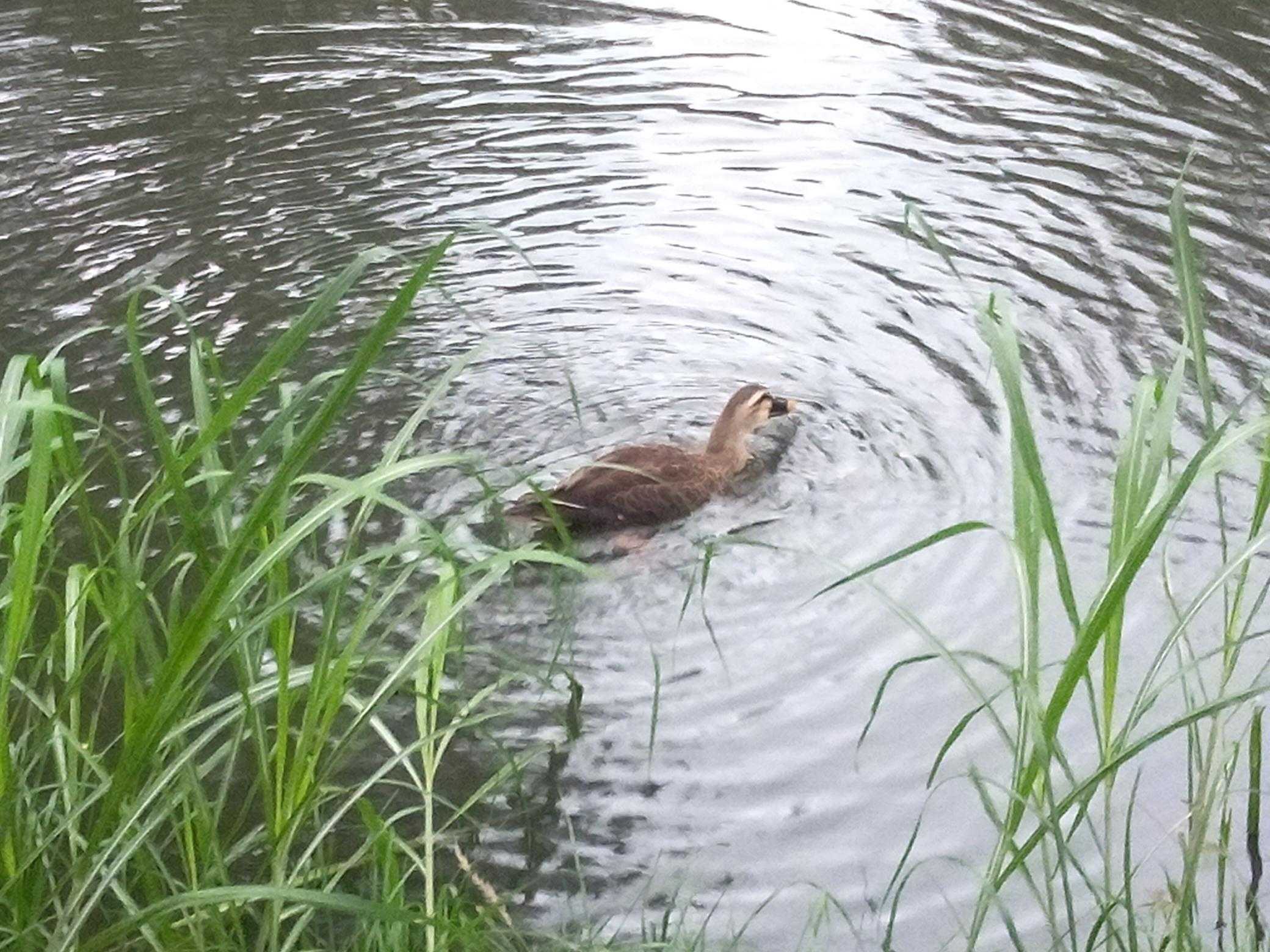 ​1羽だけの鴨もエサを食べました。