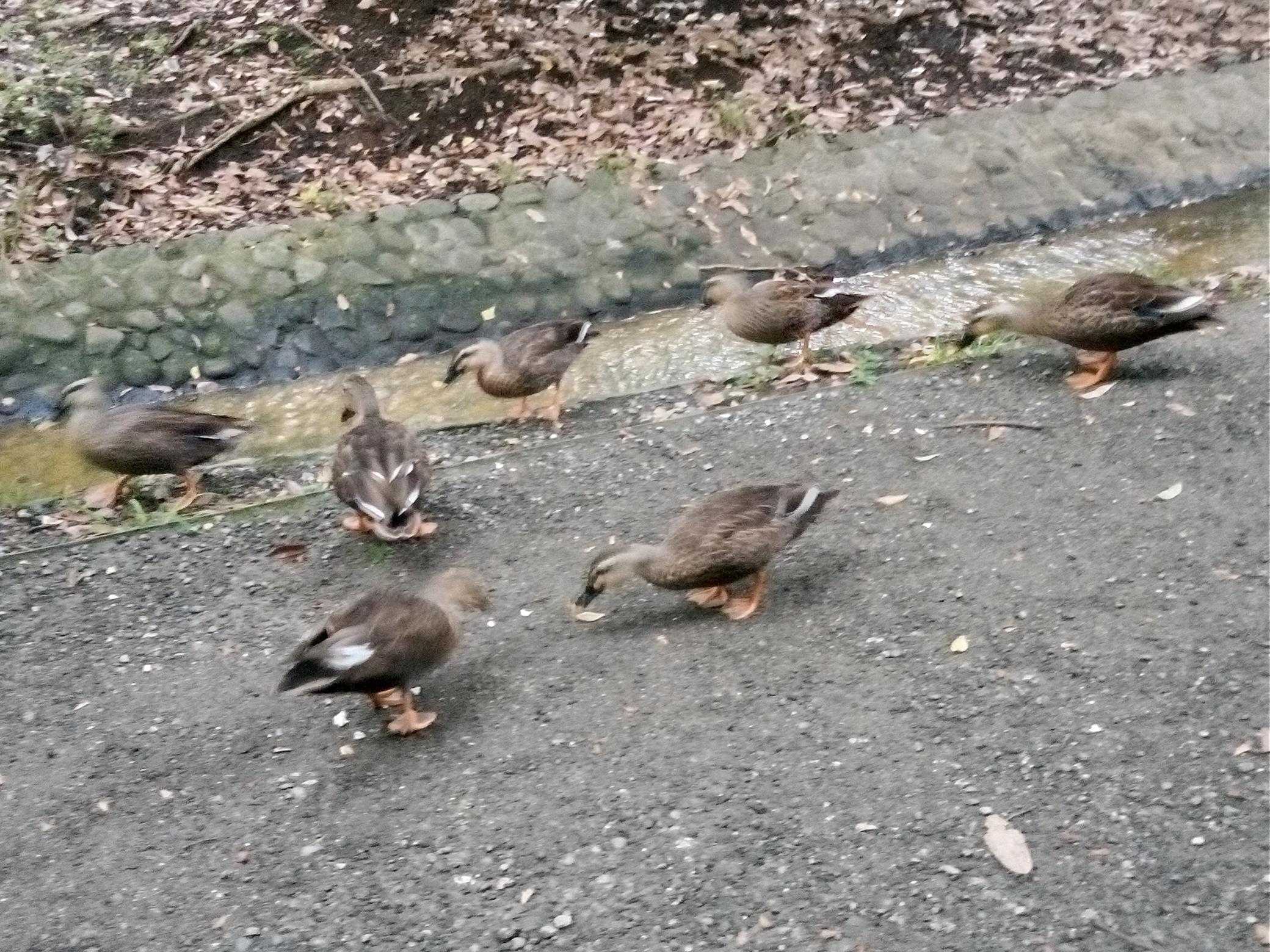 ​小川では7羽の鴨が待っていました。