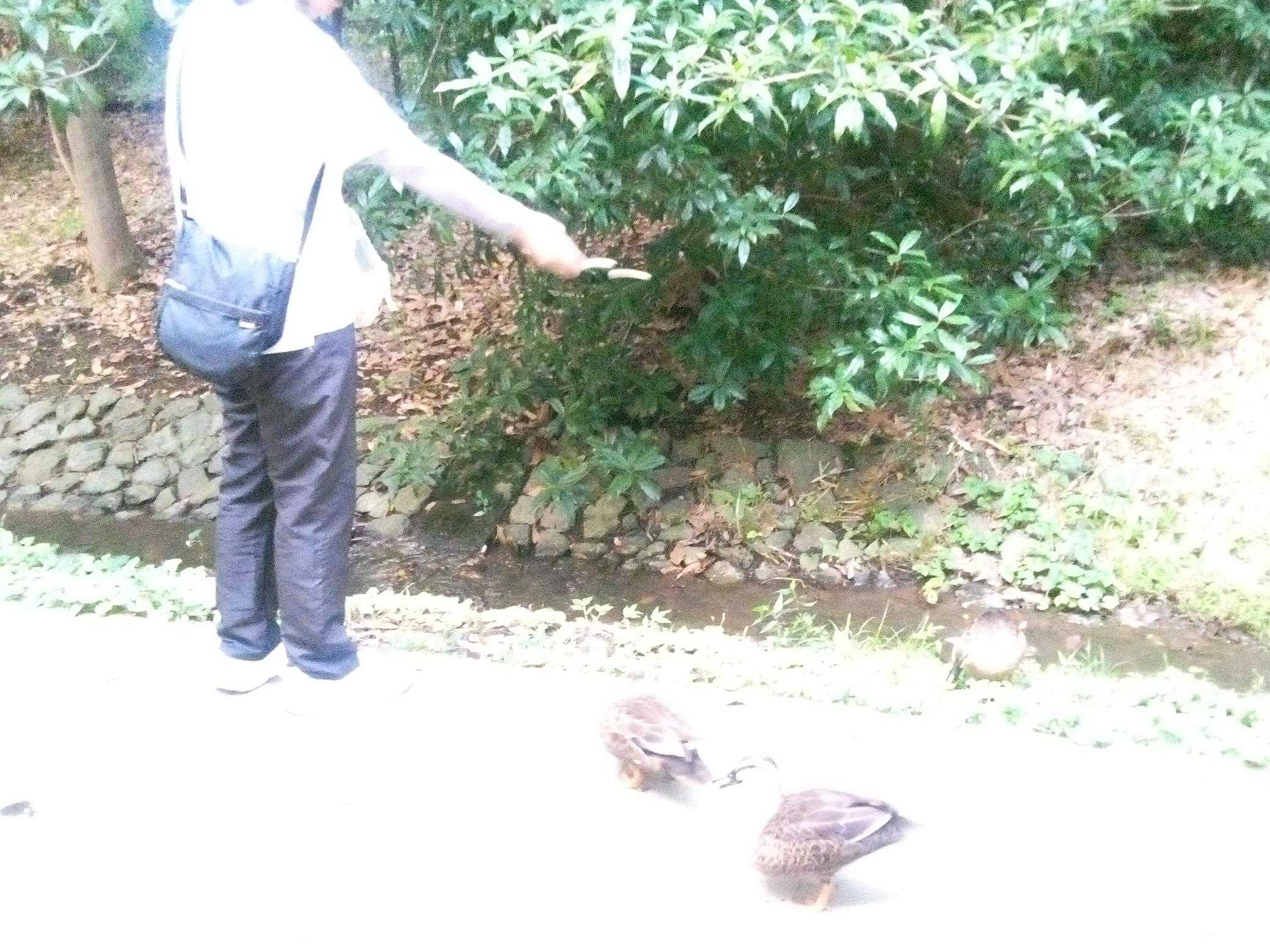 私達の姿を見つけると、まず4羽の鴨が近くに来て、