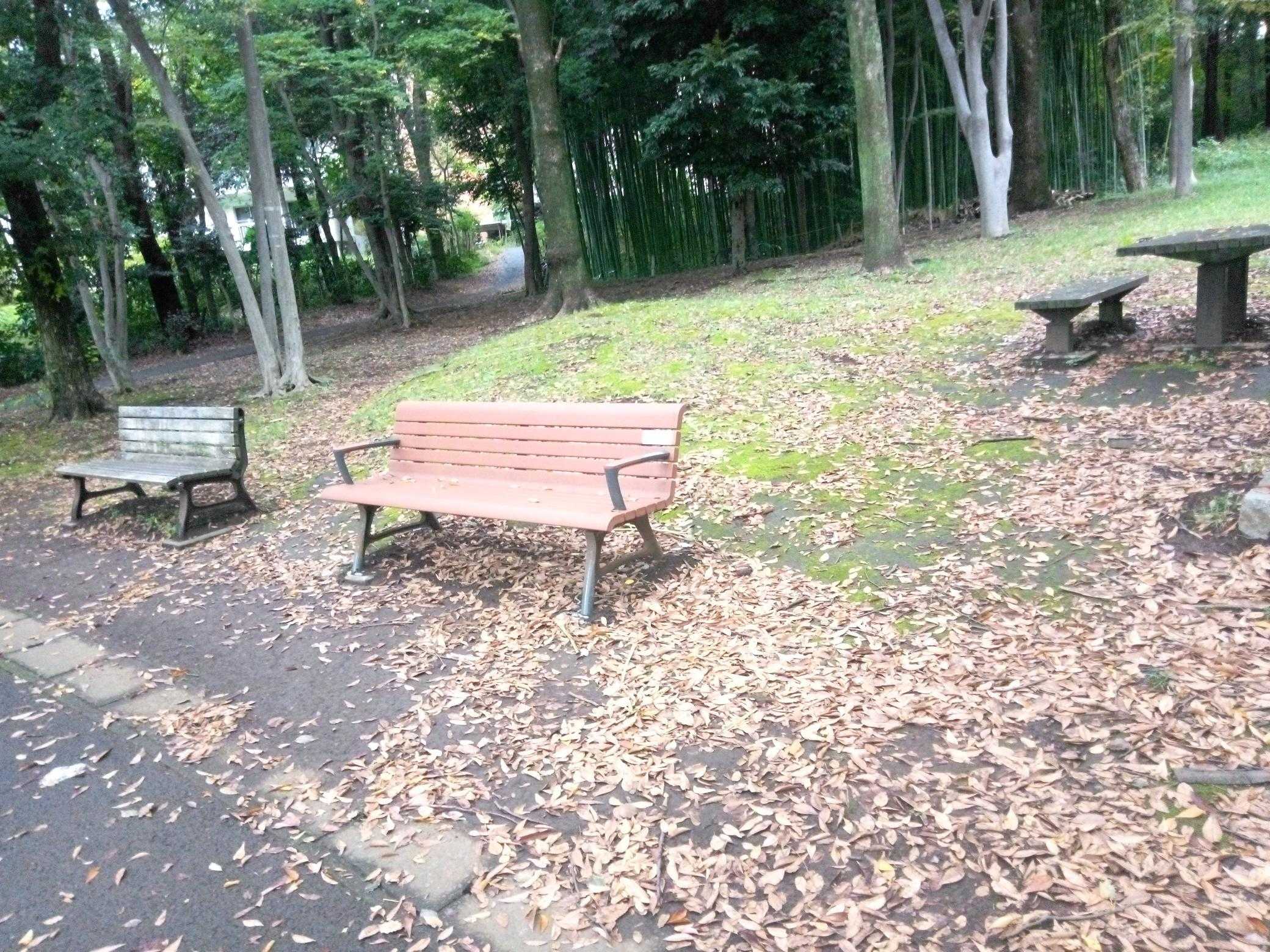 まんまる広場のベンチも秋一杯です。