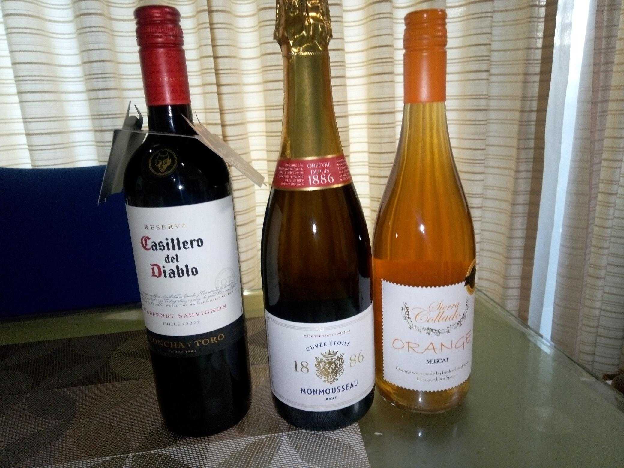 ワイン2本、スパークリングワイン1本。