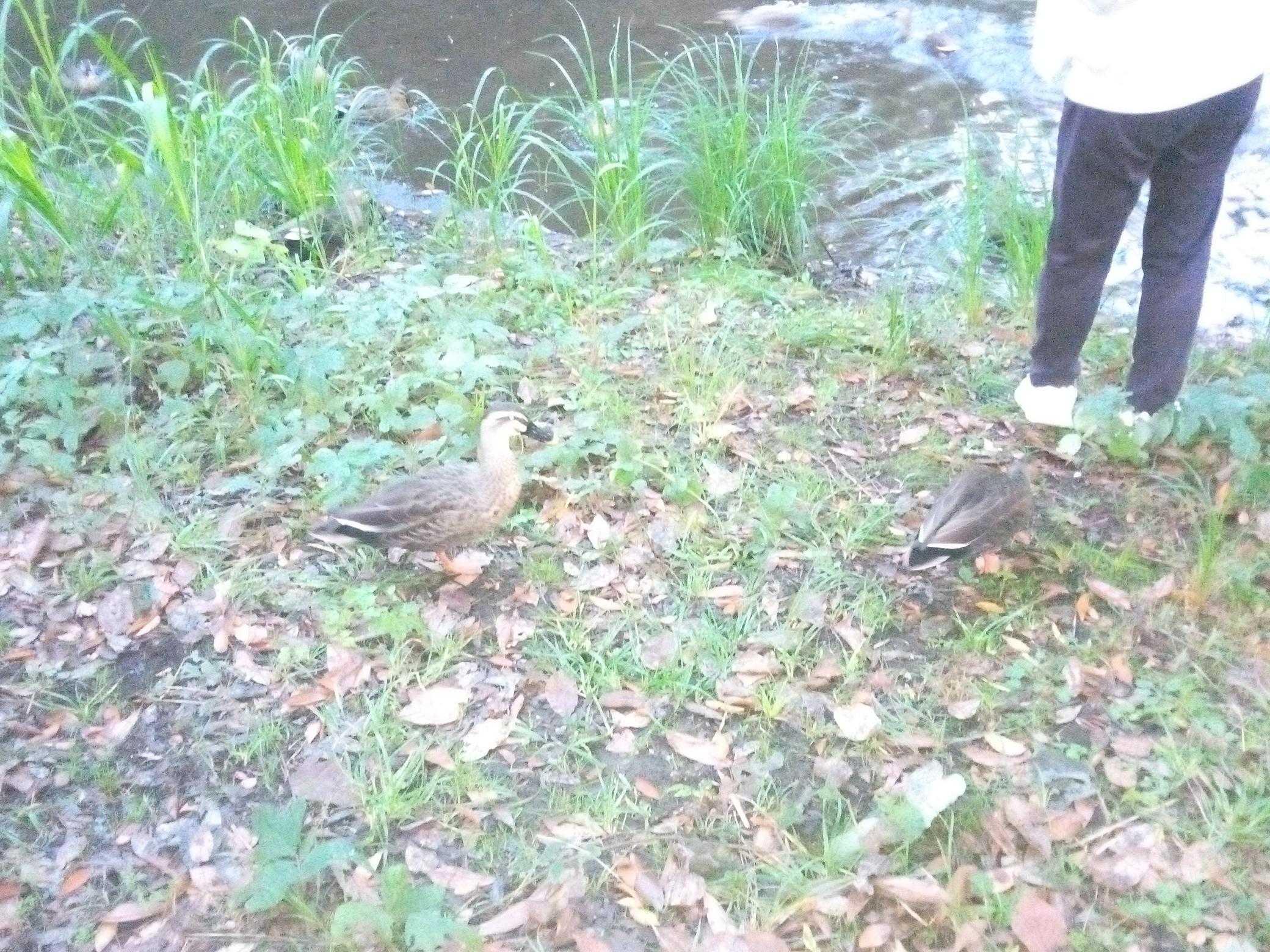 その為、鴨達は安心してエサを食べました。ウィンク