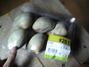 今週も雨の中、バイクで勝浦に向かう。途中、大多喜のスーパーで買い物をしようとうろうろしていると、大きなハマグリがたくさん入って261円!なにこれっと手に取ると、ホンビノス貝っていうやつだった。でも「ハマグリ」って書いてあるけど。自称ハマグリ、味が悪いに違いないと思い、迷うことなくにカゴに入れる。ずっしりと重いので、期待させておいて、実は殻が厚い!という展開に心が躍る。食べられる物をもった時、なんというか、美味い物に有りがちな重さというのがあって、こいつはそれから外れている。外国産だから、日本人の美味いもの判定からはズレているということか。焼いてみたストーブのおきを取り出して、七輪に移して焼く。匂いはハマグリを焼いている時と全く同じ。汁の出方がすごい。ハマグリよりも多いと思う。焼けた時のぱっくり加減が弱い。半開きになったままで、ひっくり返るほどの元気さは無い。1個目を食べたら、これはたしかにハマグリだなと思った。食べ慣れている人だったらわかるだろうけど、俺にはわからない。美味いんだけど、けっこうしょっぱい。塩味が強すぎだと思う。普通の七輪だと汁で火力が落ちそう。ホイルで包んでフライパンで焼いた方がいいかも。これは汁物の料理にした方がいいかなと思う。牛乳で似てシチューにしたらどうかな。