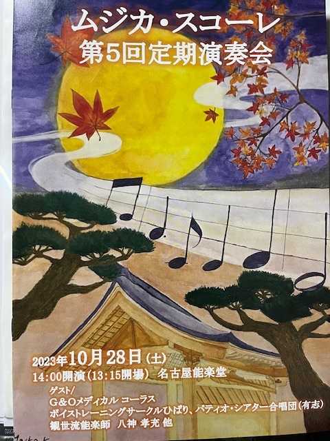 いなべの福祉施設いこいに向かう。300回目だとかで。出口さんを乗せて・・虹が出ていた。この日のプログラム。観客は30名弱、市長も来られていた。終わって菓子を頂く。コーヒーも。色紙の印刷が綺麗だったのでもらった。午後は川越診療所へ。HbA1cは前月と同じで6.8。インフルエンザの予防注射を打ってもらう。1200円。受付の女性が四響室内楽の演奏会に来られていたとかで少し雑談。薬局でも珍しく待たされる。ワイン2杯今朝の血糖値は107。