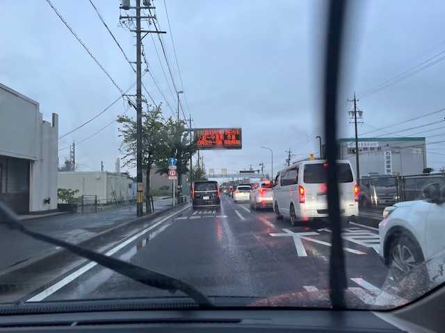 雨の中練習に向かう。