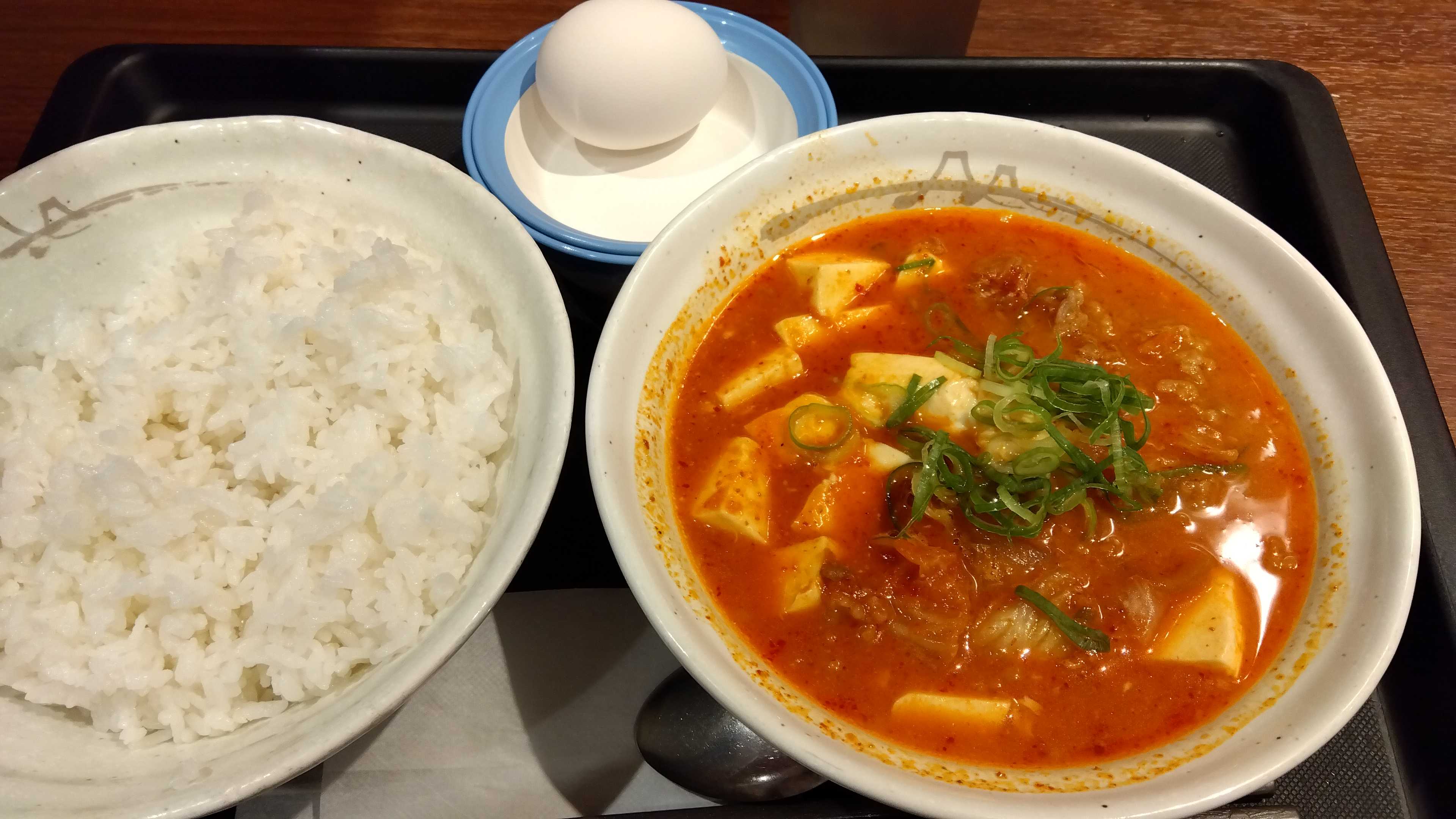 松屋で、牛豆腐キムチチゲセットを。