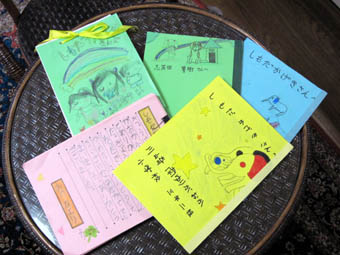 読み聞かせに行った先の小学校、幼稚園、保育園の子供たちから手紙をいただくと、ほんとうに元気が出ます。南百合丘小学校の1,2,3年生からどかっと手紙が届きました。
