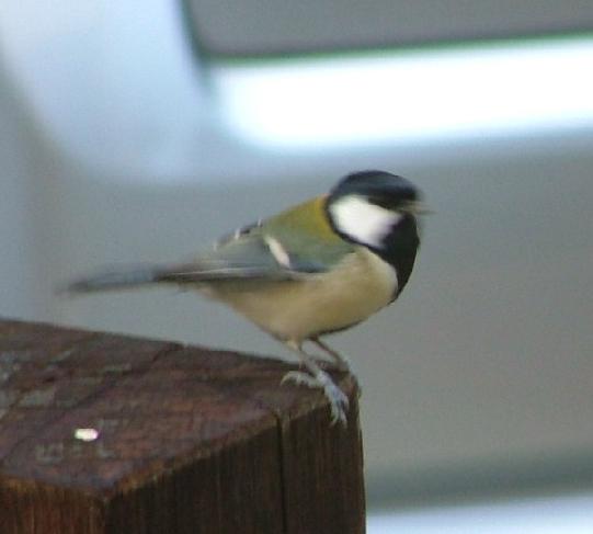 朝6時に庭を眺めたら、シジュウカラ君がせわしげに地面を走り回ったり、枝に止まったりしている。慌ててカメラを構えたが、シジュウカラ君の忙しさにはついて行けない。枕木に停まったところを何とか撮ったがちょっとピンぼけ。