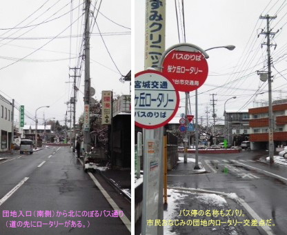 団地の東の方には、仙台市内からパークタウンに抜ける広い道路があります。現在工事中の地下部分も完成すれば、一段とアクセスは向上するでしょう。桜ヶ丘団地は昭和50年前後からの分譲だと思いますが、宮城学院と桜丘中学校の間をすり抜けていくこの都市計画道路は、昭和60年代には団地部分(南は生協の角から北は宮城学院まで)は既に出来ていたと記憶しております(北環状につながるのは平成に入ってからでしょう)。