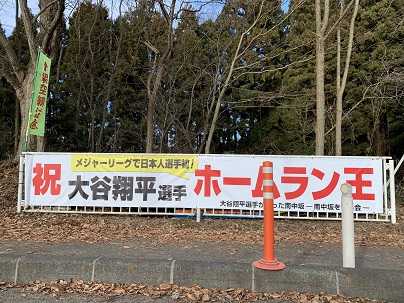 奥州市立姉体小学校は田園地帯にあります。門から立ち入らず遠望した横断幕には「 頑張れ!大谷選手 僕らの希望 二刀流大谷選手の母校 奥州市立姉体小学校 」と。子どもたちの誇りですね。
