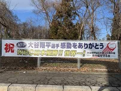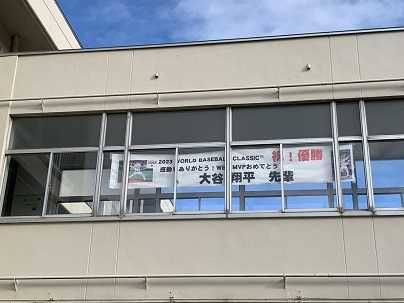 続いて、奥州市立水沢南中学校です。通称南中(なんちゅう)。 2023 WORLD BASEBALL CLASSIC MVP おめでとう 大谷翔平先輩 とありました。